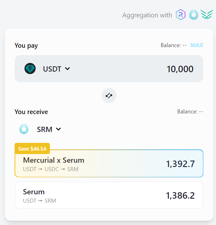 Jupiter is the first DEX Aggregator on Solana. They are currently routing across Serum, Raydium and Mercurial Finance to offer users the best prices for a swap.