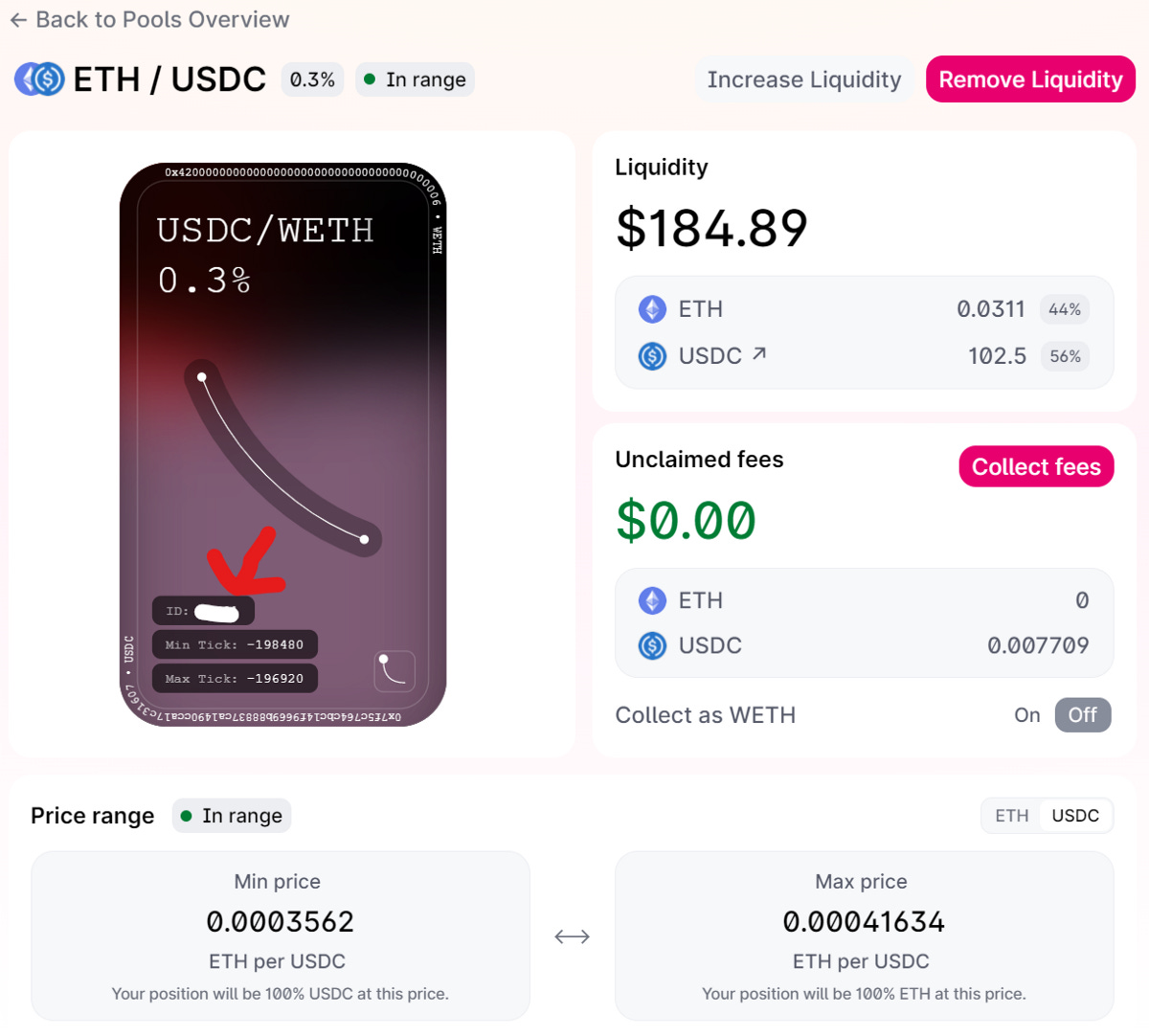 To get the TokenID, we first need to own an Uniswap V3 NFT. The NFT can be created by adding liquidity to Uniswap V3 on either Ethereum, Optimism, Arbitrum or Polygon.