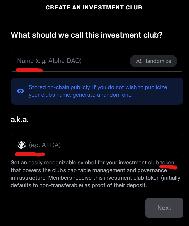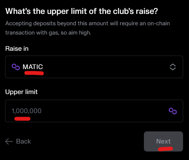 Input the name of the club and its token ticker.