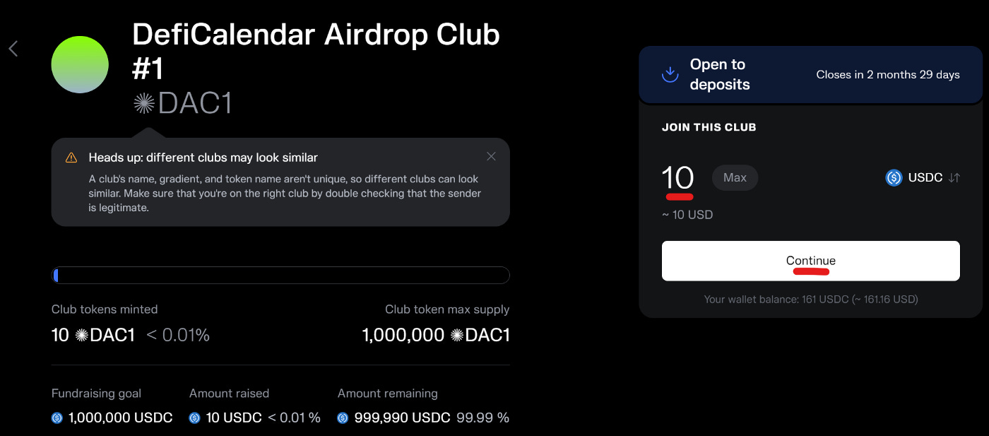 Click “Create on-chain club”.