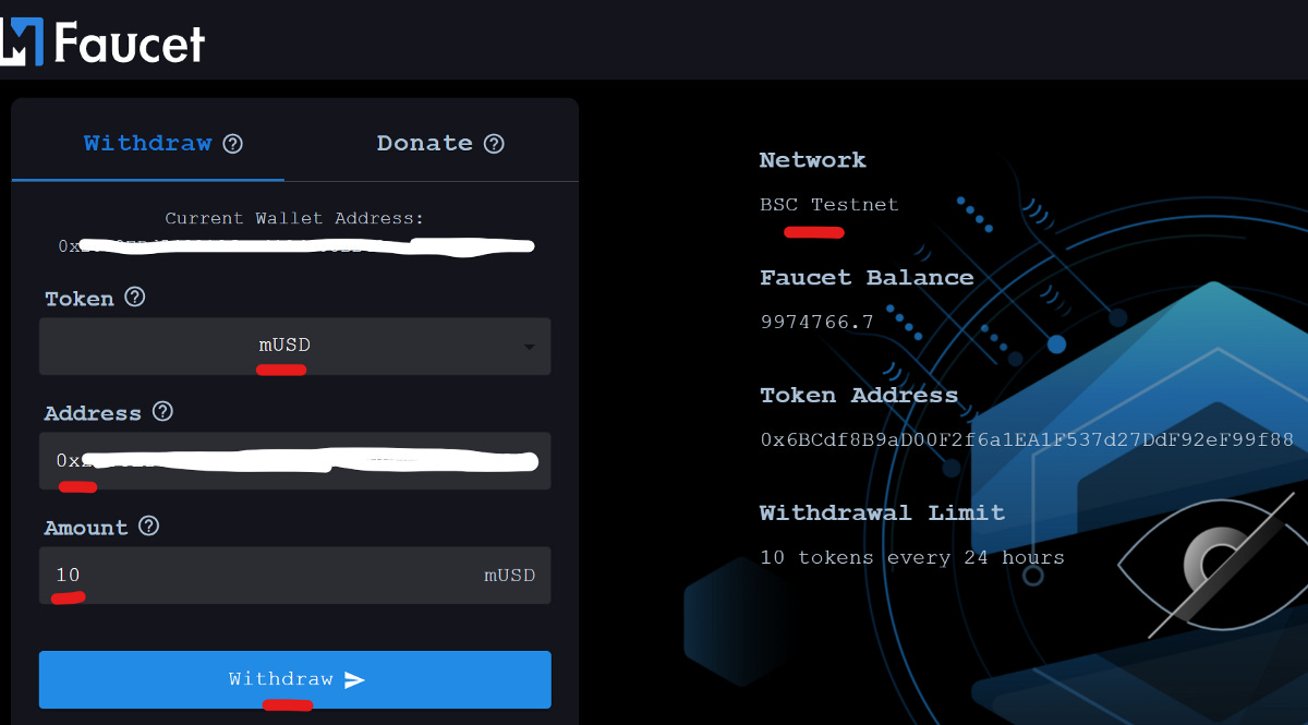 Then go to https://faucet.mystiko.network/ and connect your wallet to BSC Testnet. Claim mUSD/MTT to your address.