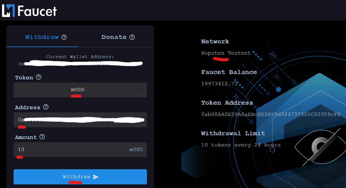 Now connect your wallet to Ropsten Testnet and claim mUSDT/MTT to your address.