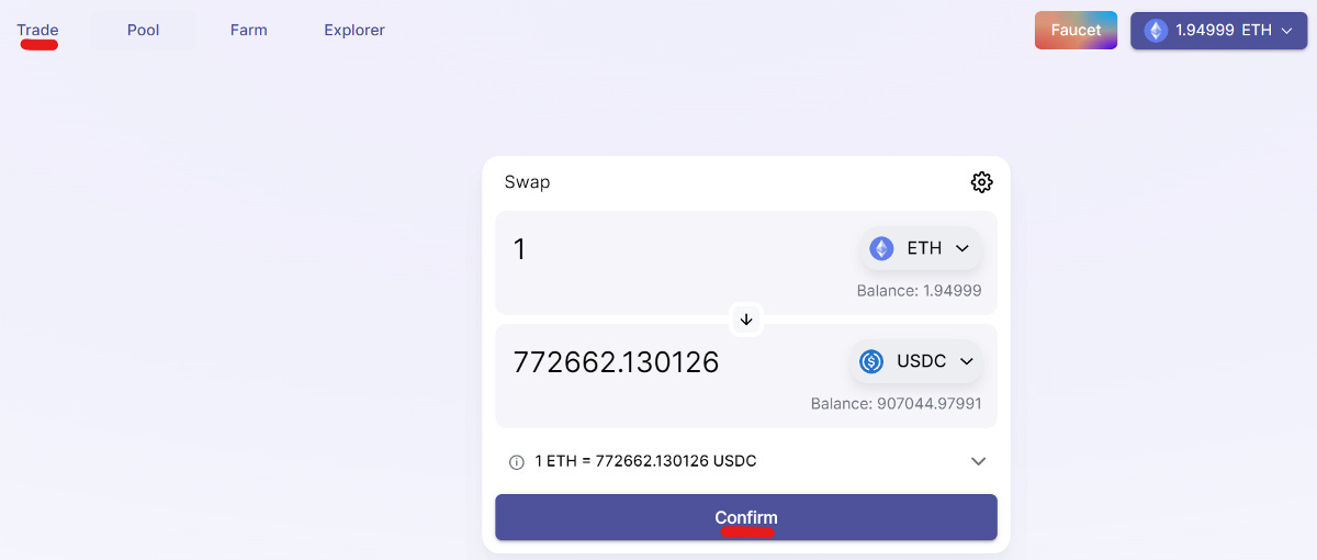Go to “Trade” and make a random swap.