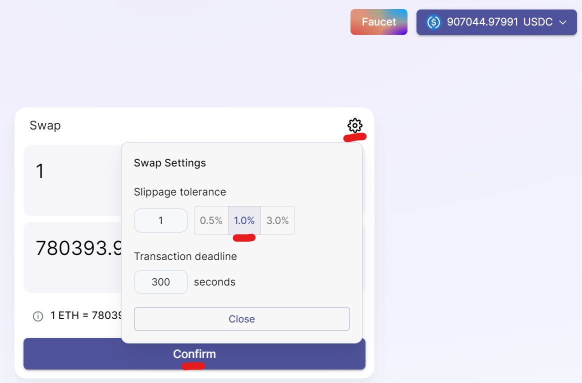 Also we change to slippage to 1% and make a swap again.
