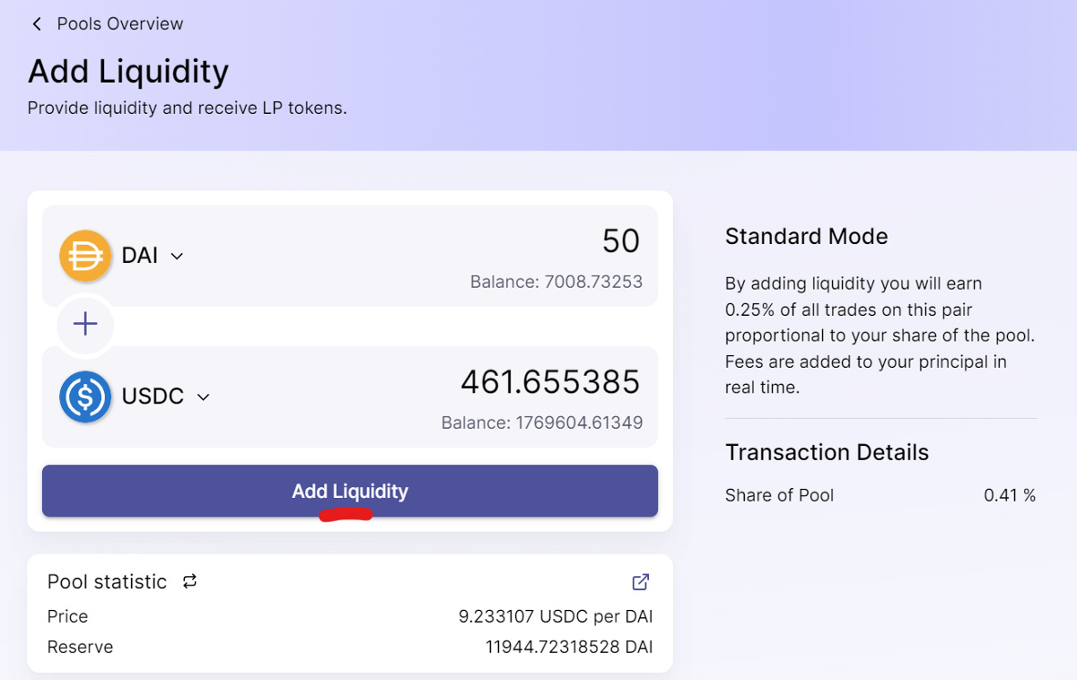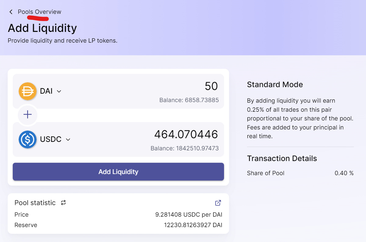 Now we go to pools to add liquidity.