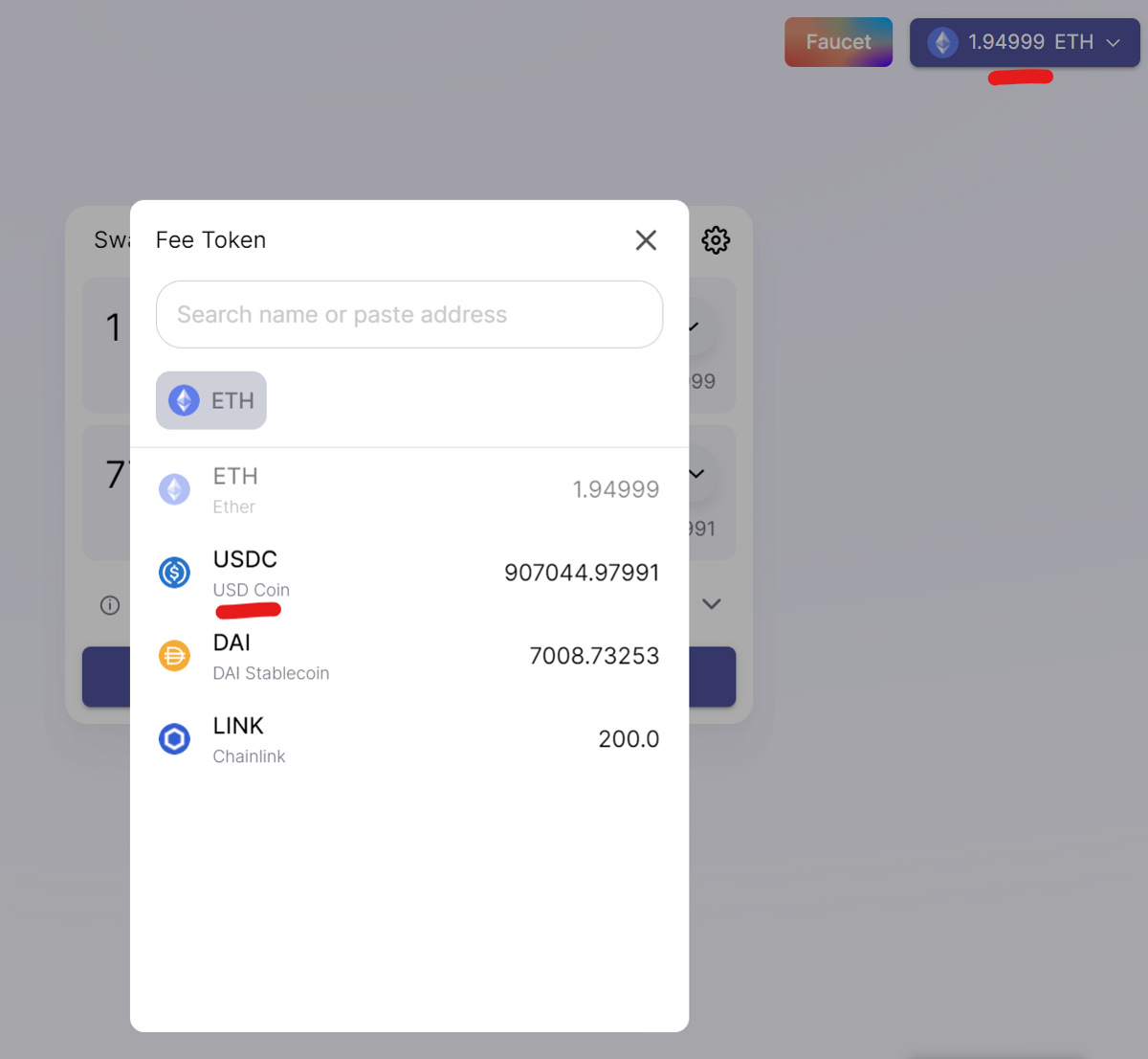 We then change the fee token (token for paying gas fees) to USDC.