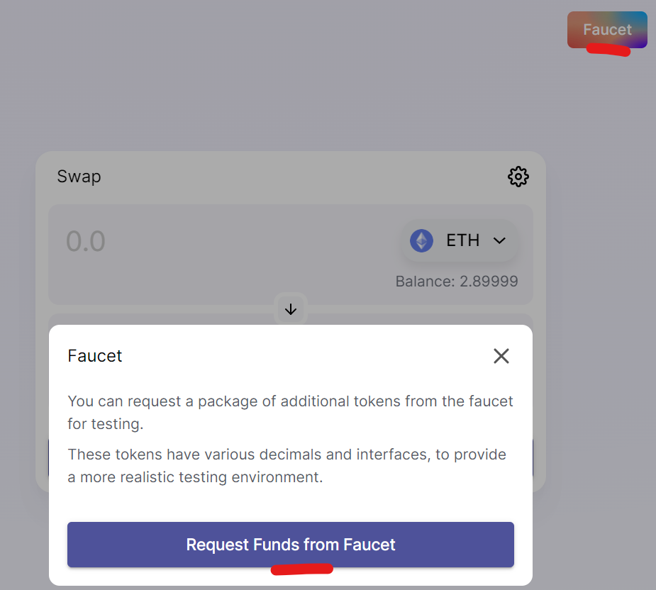 Go to SyncSwap using https://syncswap.xyz/. Connect your wallet and go to “Faucet” to claim some more test tokens.